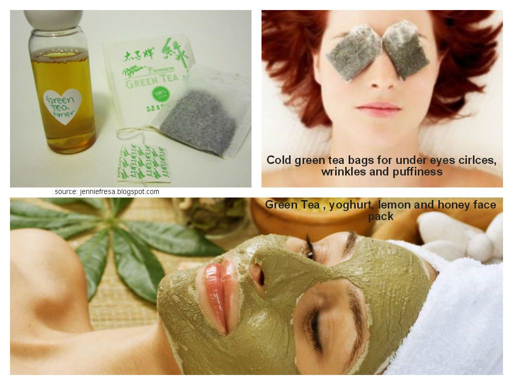 - The best way to use green tea is utilize the left over leaves instead of throwing and make a face pack mixing crushed green tea leaves with lemon and yogurt. This face pack will be best before going out for a party as it will lift up your skin and make it glow. For added moisture you can add honey to it.